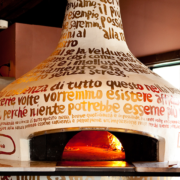 殊に南面を取り囲むウッドデッキやその一角にあるキンモクセイの木はその形を眺めているだけで時間を忘れます。また垣根とデッキの間にある約50m2の自家菜園では季節毎の野菜が育っています。厨房にはイタリア語でオーナーの思いをペインティングした石窯とその中には炎がゆらめき、薪とピッツァの焼ける芳ばしい香りがたちこめています。