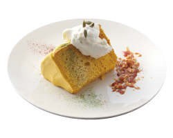 - かぼちゃのやさしい甘さがおいしい。鮮やかな白色のクリームとともに…。