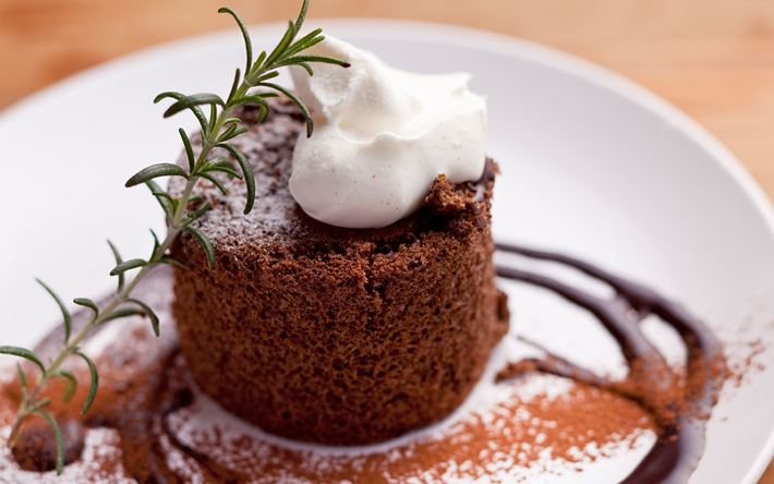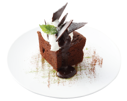 - チョコの風味としっかりした感触。生クリームをたっぷり添えました。