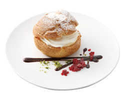 - カスタードクリームと生クリームがシューの食感のなかで広がります。
