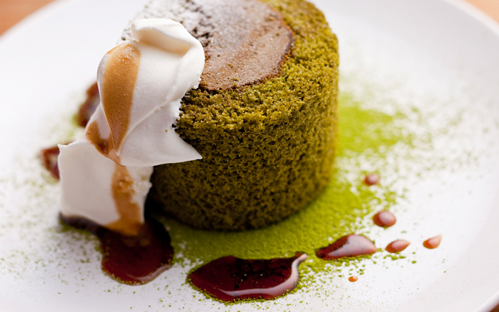 - 祇園辻利の抹茶をたっぷりと使った贅沢なシフォンケーキ。濃厚なその味わいをどうぞ。