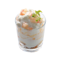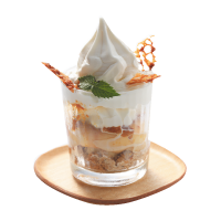 - 甘酸っぱいピーチヨーグルトにクリーミィーなソフトクリームをのせました。