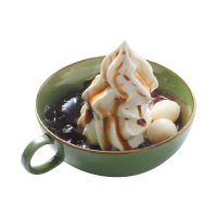 - コーヒーゼリーとソフトクリームをメインに小豆、白玉とハイカラな組み合わせに黒蜜をたっぷりとかけてお召し上がり頂きます。